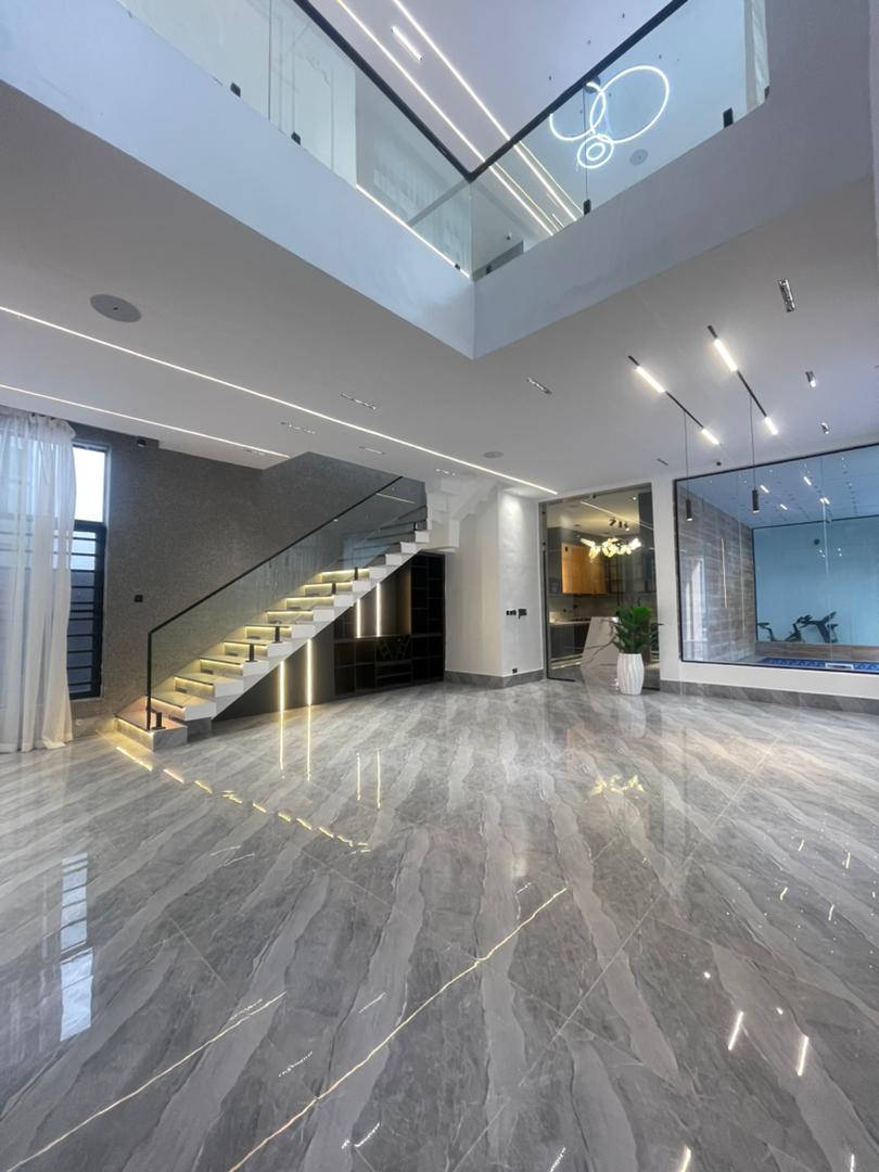 5BED🛌 5BATH🛀2CARS🚘. FULLY DETACHED DUPLEX WITH LUXURY INTERIOR, 24hrs ESTATE SECURITY, SWIMMING POOL, DOUBLE VOLUME LIVING ROOM, EQUIPPED GYM ROOM AND BQ
